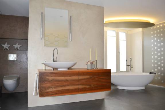 AI DO macht Wände fugenlos. Bad, WC, Wellnessbereich oder Küche werden zum farbigen Erlebnis.